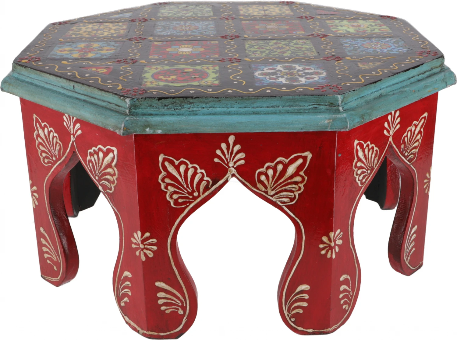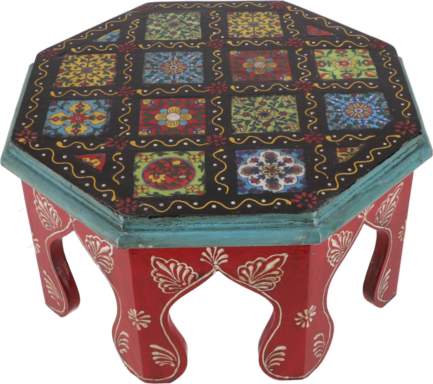 Bemalter Kleiner Tisch Mit Fliesenmosaik – Rot Ø 30 Cm