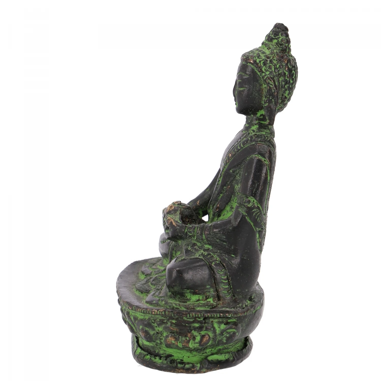 Das Dhyana Mudra kann mit einer Hand oder mit beiden Händen durchgeführt werden. Bei einer Hand wird die Linke in den Schoß gelegt, während die rechte jedes andere Mudra einnehmen kann. Rituelle Objekte wie z. B. Buch oder Schüssel können in die Hand gelegt werden. Das Dhyana Mudra ist die Geste der Meditation. Wenn mit beiden Händen durchgeführt, werden die Hände auf der Höhe des Bauches gehalten. Die rechte Hand wird über die linke gelegt, beide mit den Handflächen nach oben. Die Daumen können sich dabei an den Spitzen berühren und bilden damit ein mystisches Dreieck, dem von vielen esoterischen Sekten große Bedeutung zugesprochen wird, unter anderem soll es das mystische Feuer repräsentieren, das alle Unreinheiten verbrennt. Das Dhyana Mudra transformiert jede seelische Anhaftung in die klare Wahrnehmung.