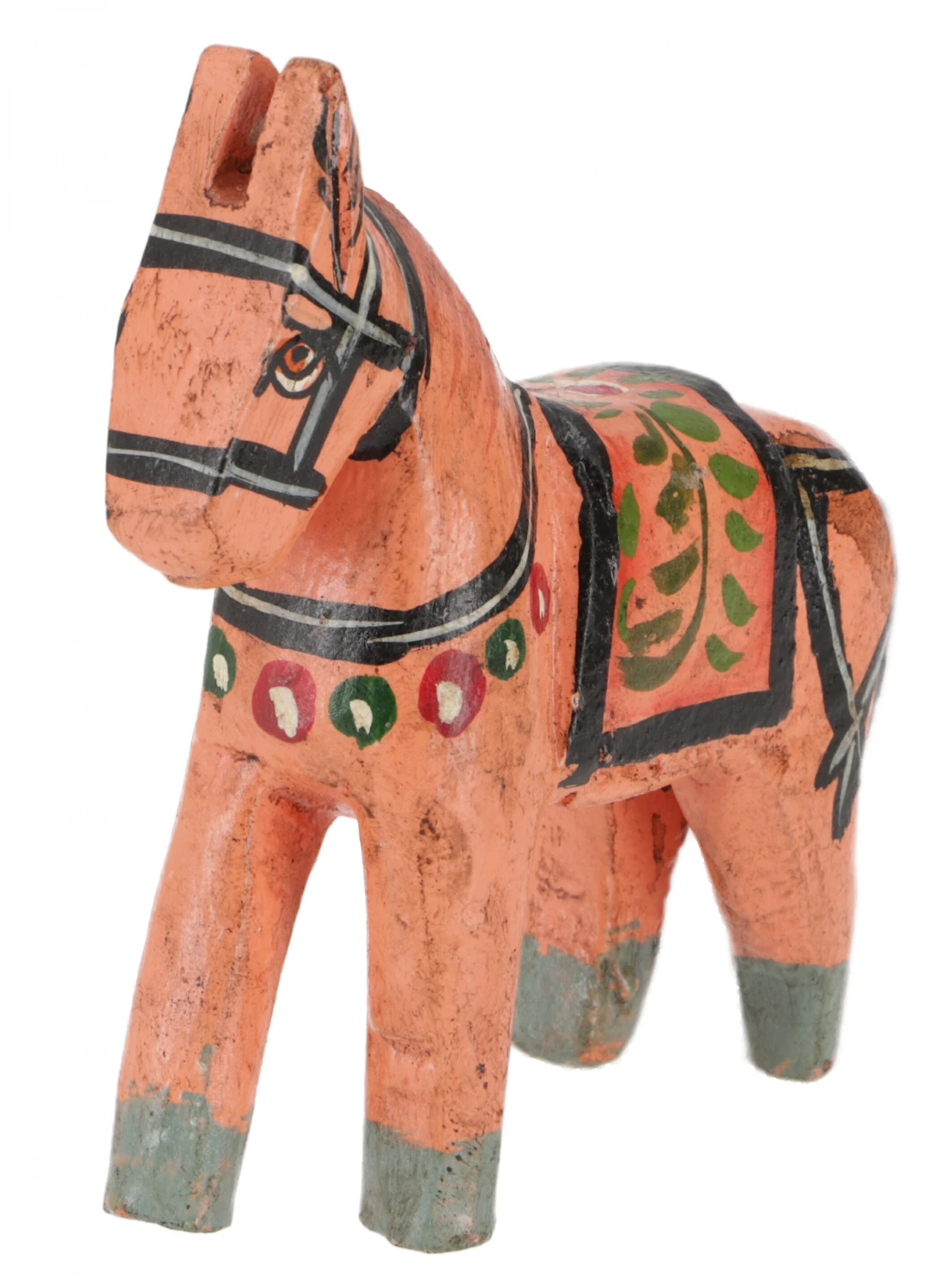 Deko Pferd, Im Antik- Look Bemalt, Holzpferdchen – Lachs – 10x12x4 Cm