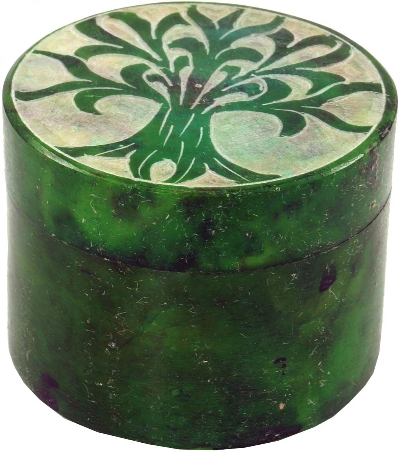 Dose Aus Speckstein, Schmuckdöschen – Baum Des Lebens – 4x5x5 Cm Ø5 Cm