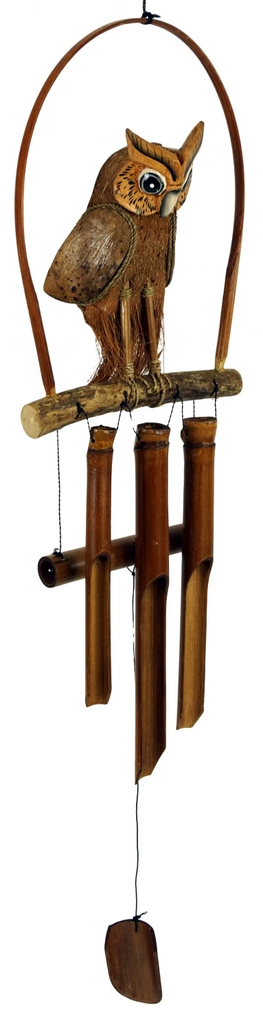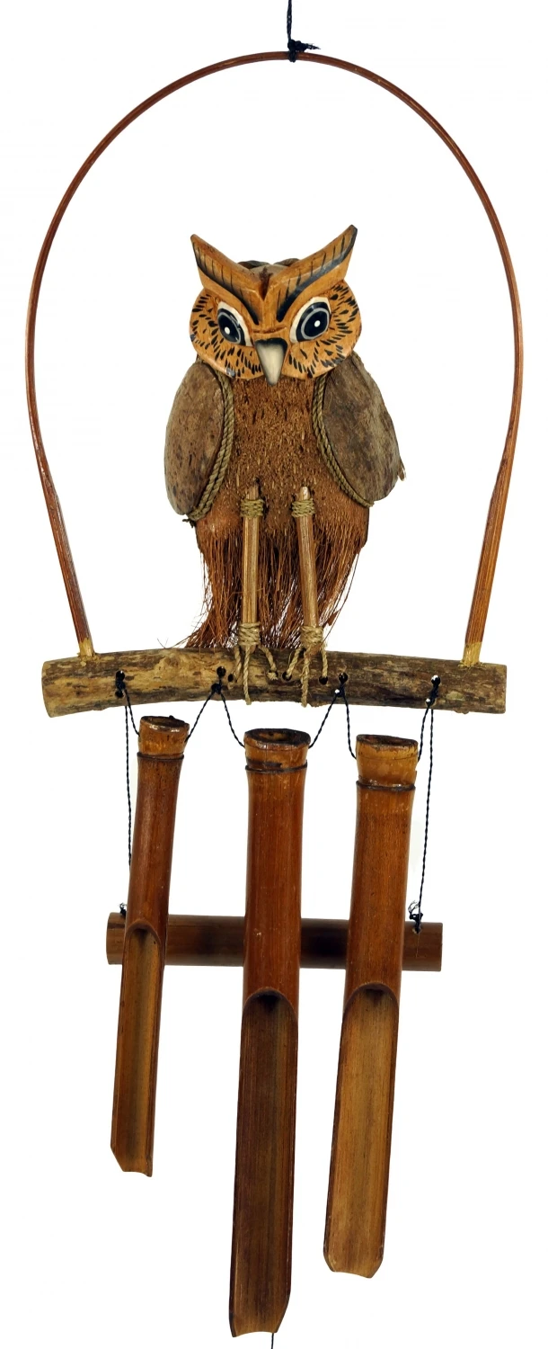 Exotisches Bambus Klangspiel – Windspiel `Eule` – 70x20x4 Cm