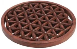 Geschnitztes Wandbild Deko Wandrelief, Untersetzer Flower Of Life – Blume Des Lebens – 2 Cm Ø29 Cm