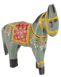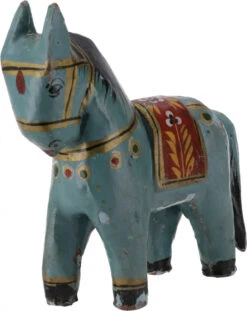 Deko Pferd, Im Antik- Look Bemalt, Holzpferdchen – Blau – 10x12x4 Cm