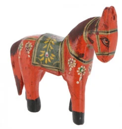 Deko Pferd, Im Antik- Look Bemalt, Holzpferdchen – Rot – 10x12x4 Cm