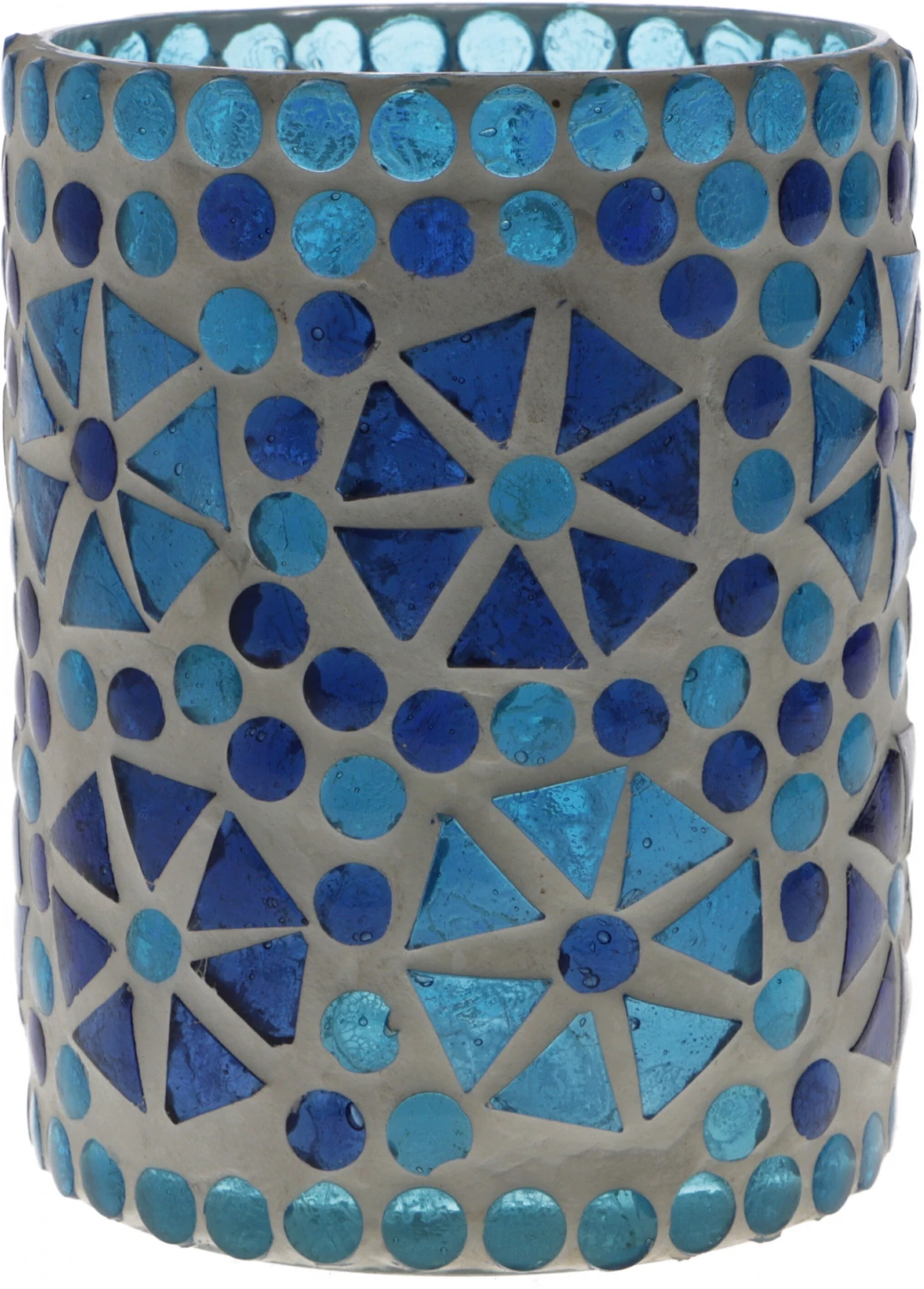 Mit buntem Glasmosaik beklebtes Glas, passend für Standard Teelichtkerzen.