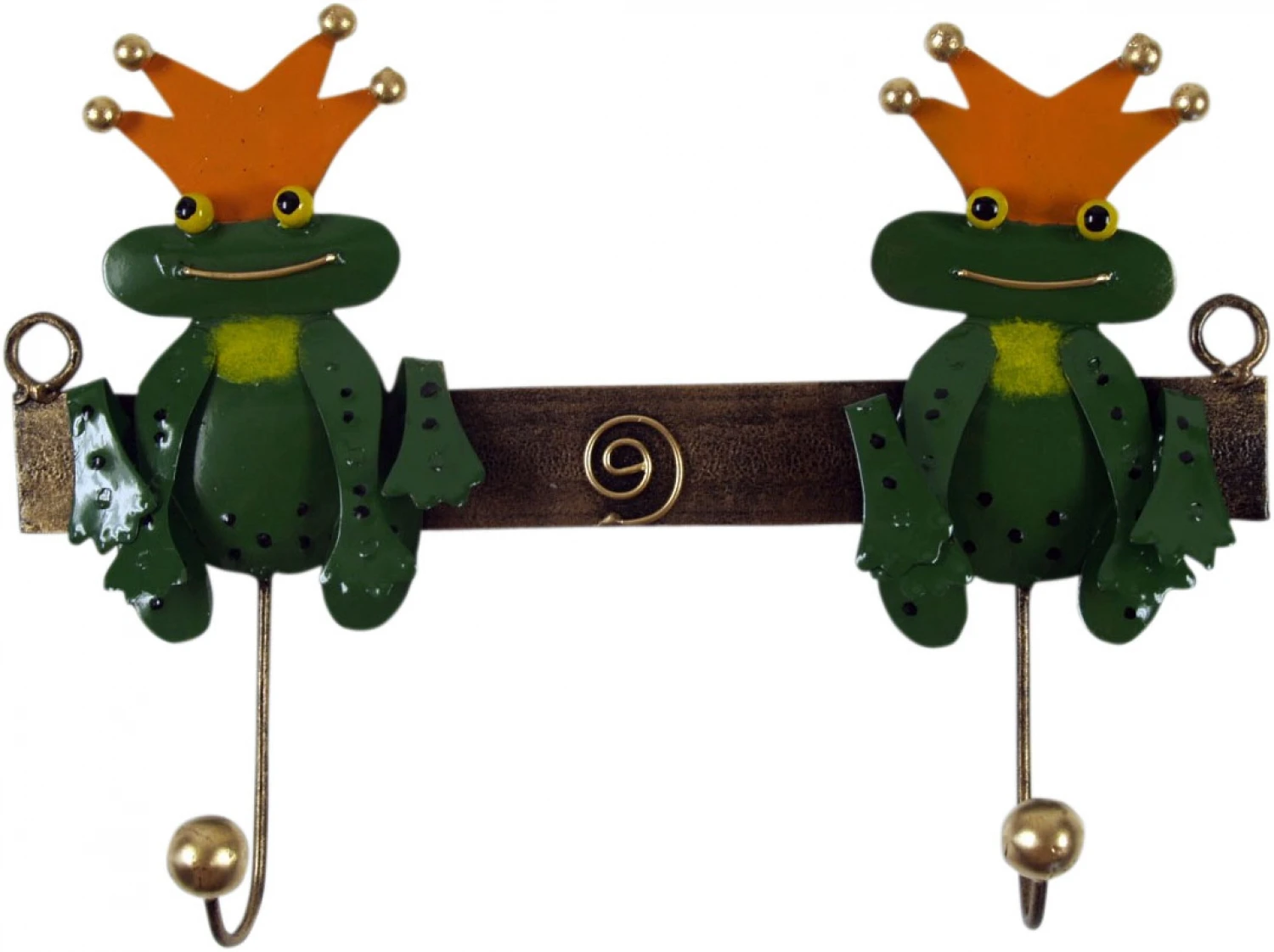 Hakenleiste Mit Figuren, Ethno Kleiderhaken, Metall Kleiderhaken – Zwei Froschkönige – 15×26 Cm