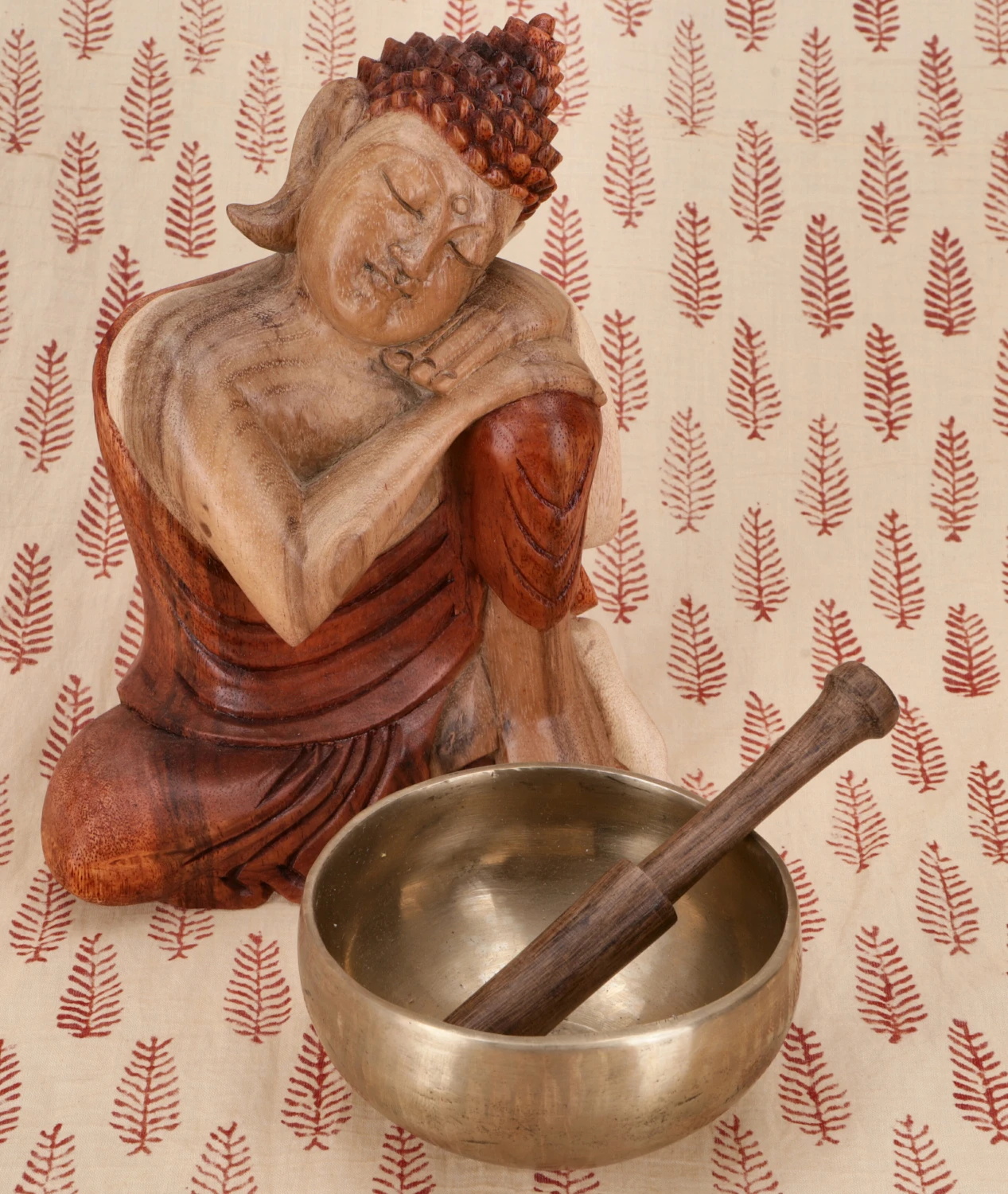 Die Klangschale mit ihrem wunderbarem Klang wurde aufwendig durch Hammerschlag getrieben. Sie eignet sich hervorragend zur Meditation und hilft durch ihren Wohlklang zur inneren Ruhe zu finden.