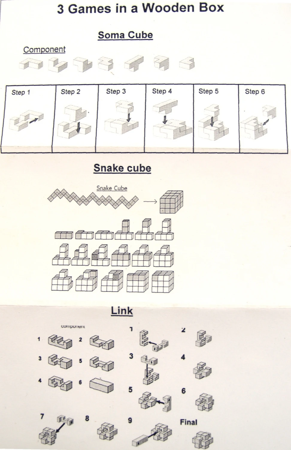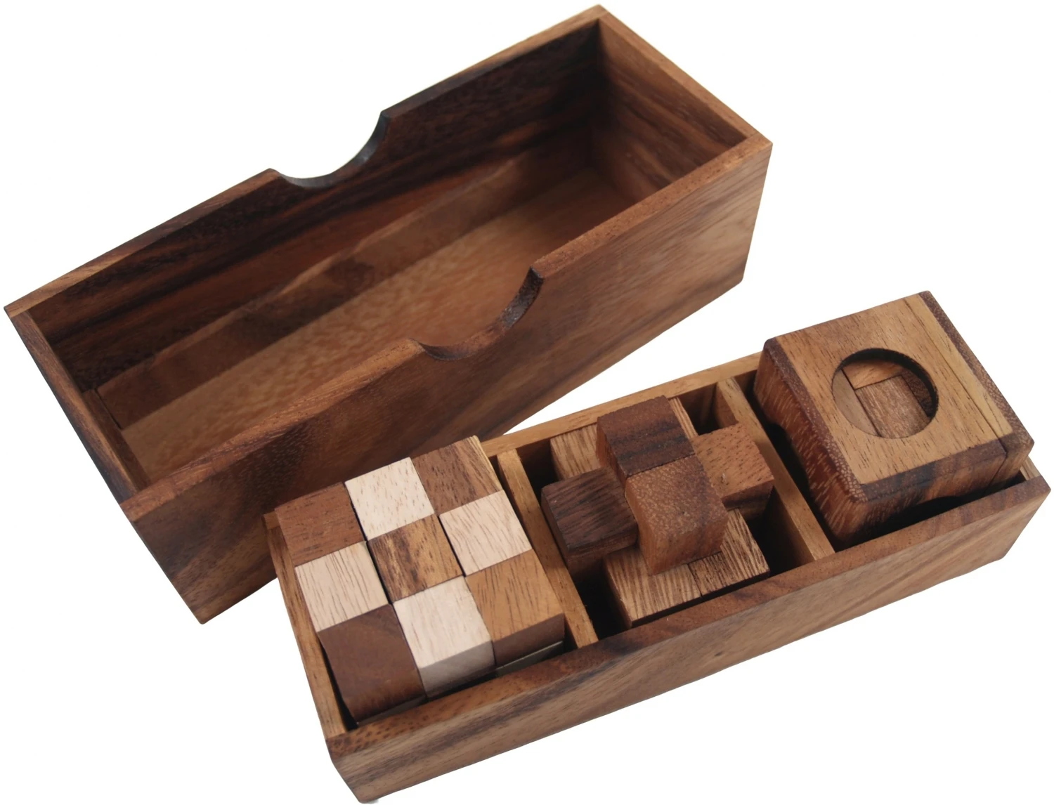 Holzspiel, Geschicklichkeitsspiel, Knobelspiel – 3 Puzzle – 7x7x7 Cm