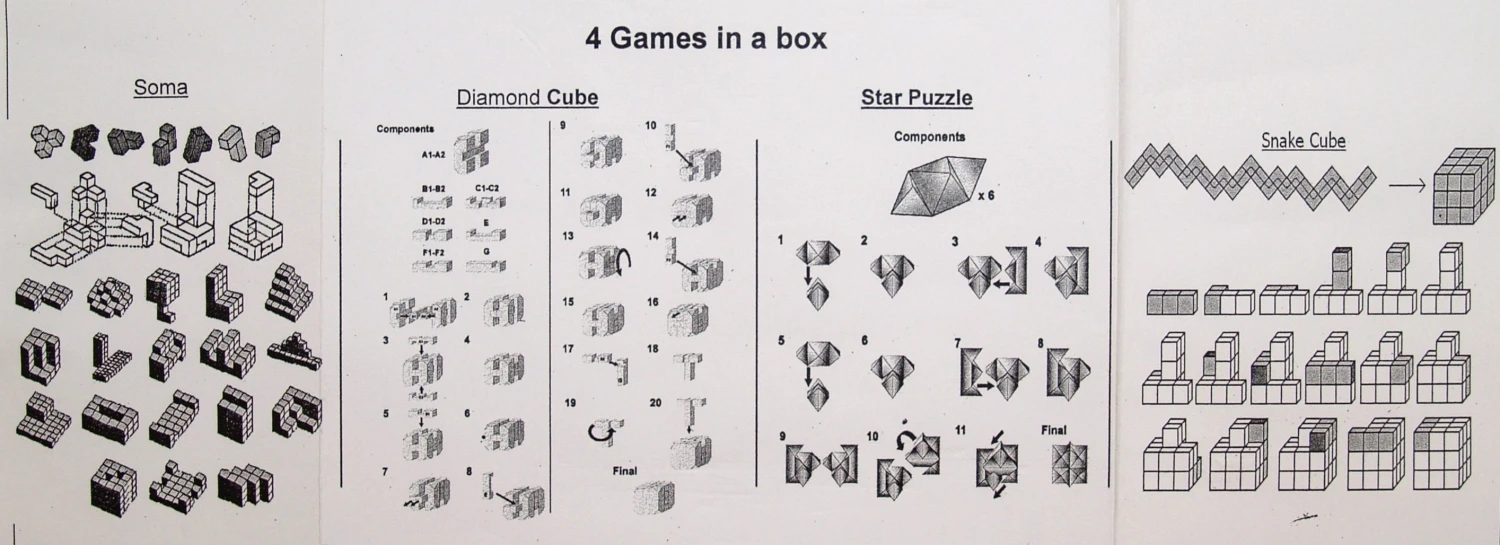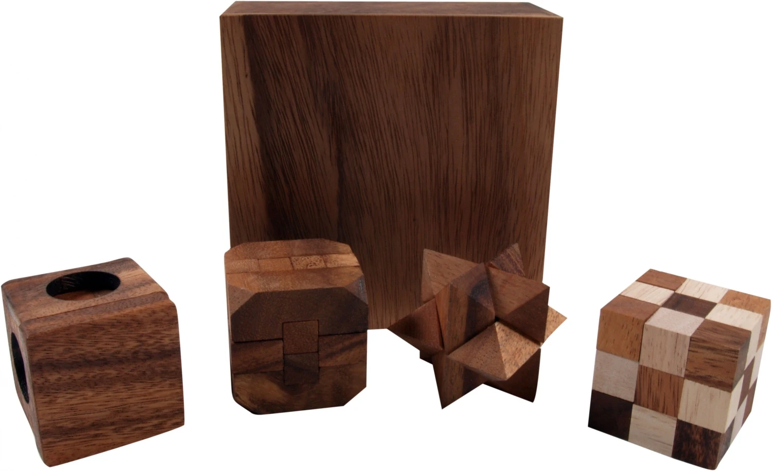 Holzspiel, Geschicklichkeitsspiel, Knobelspiel – 4 Puzzle – 6,5x13x13 Cm