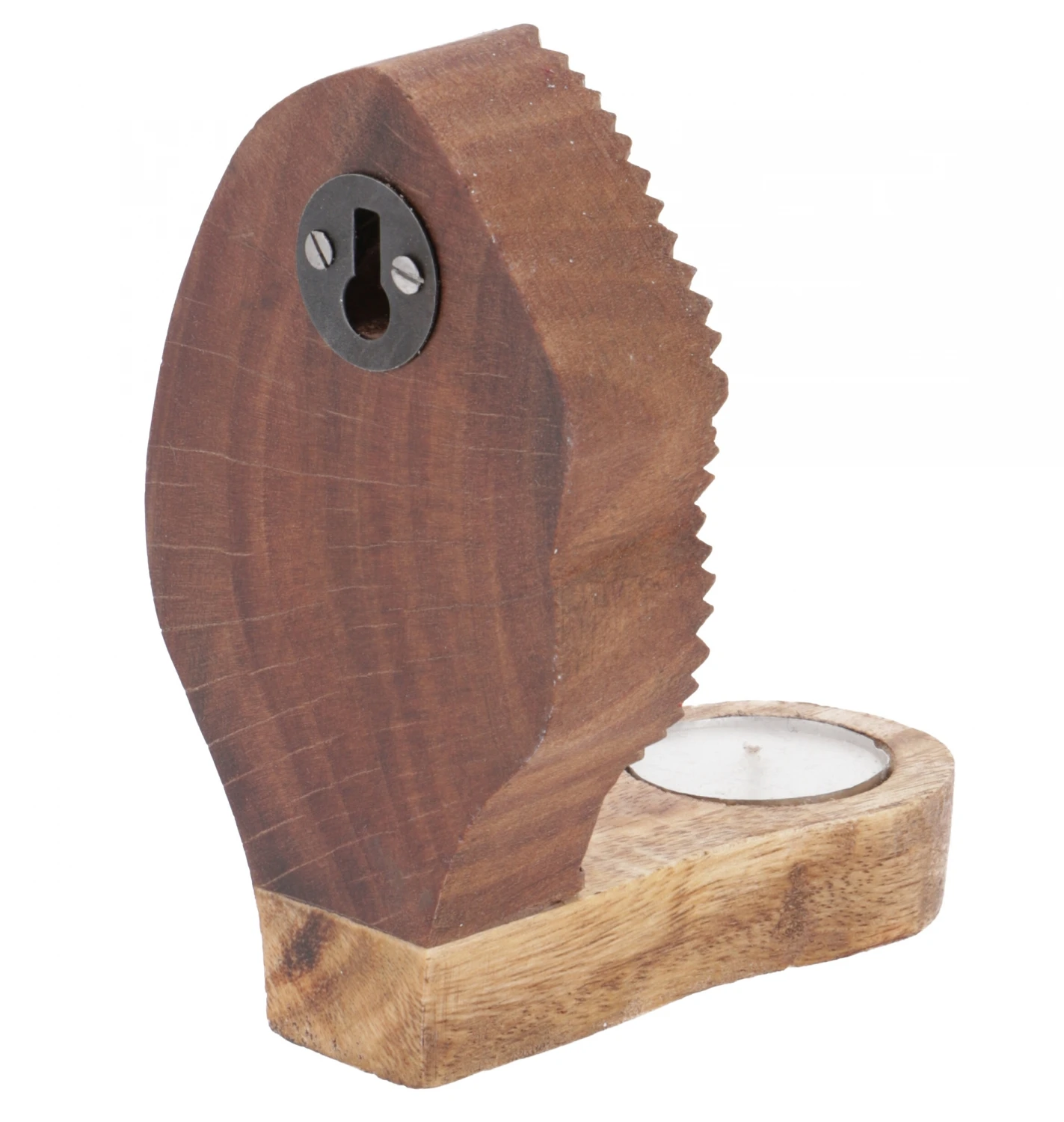 Der handgeschnitzte Textilstempel findet sich hier in einem dekorativen Teelichthalter wieder. Stehend oder an der Wand angebracht setzt dieser kleine Leuchter einen wunderschönen exotischen Akzent.