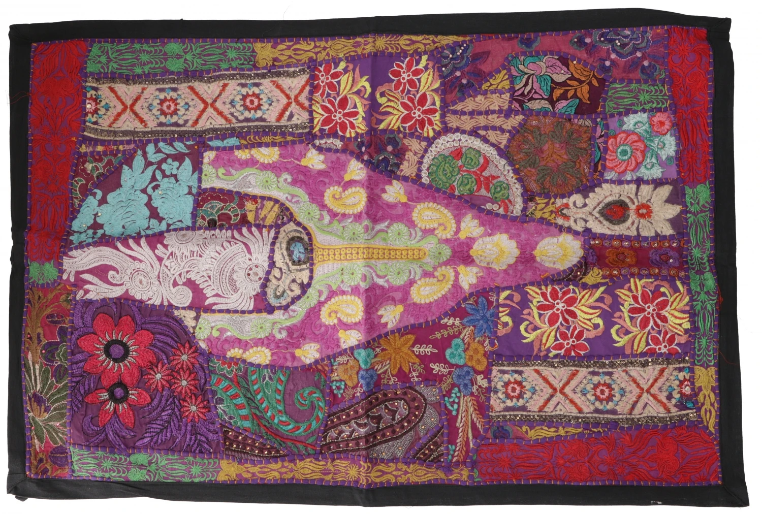 Indischer Wandteppich Patchwork Wandbehang/Tischläufer Einzelstück 90*65 Cm – Muster 21