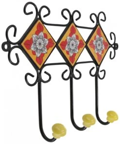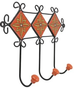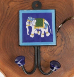 Doppelwandhaken, Garderobenhaken Mit Handgefertigter Keramik Fliese – Modell 5 – 15x10x5,5 Cm
