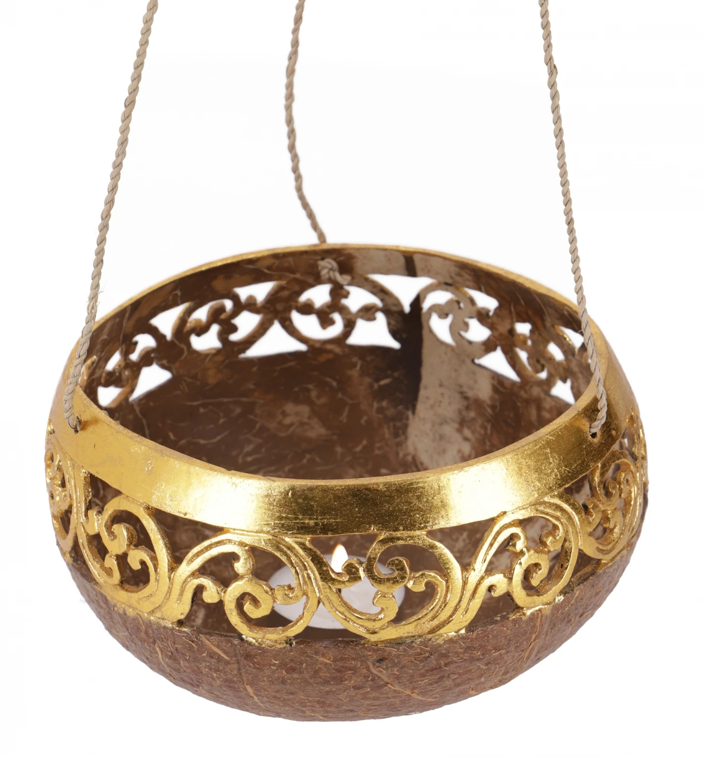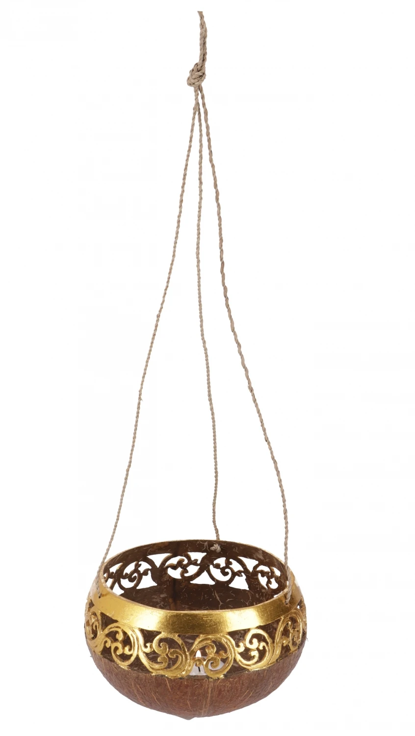 Die Ornamente wurden von Hand in die polierte Nuss geschnitten. Die Kokosnuss hat dabei ihre natürliche Form behalten, daher kann die Größe leicht variieren.