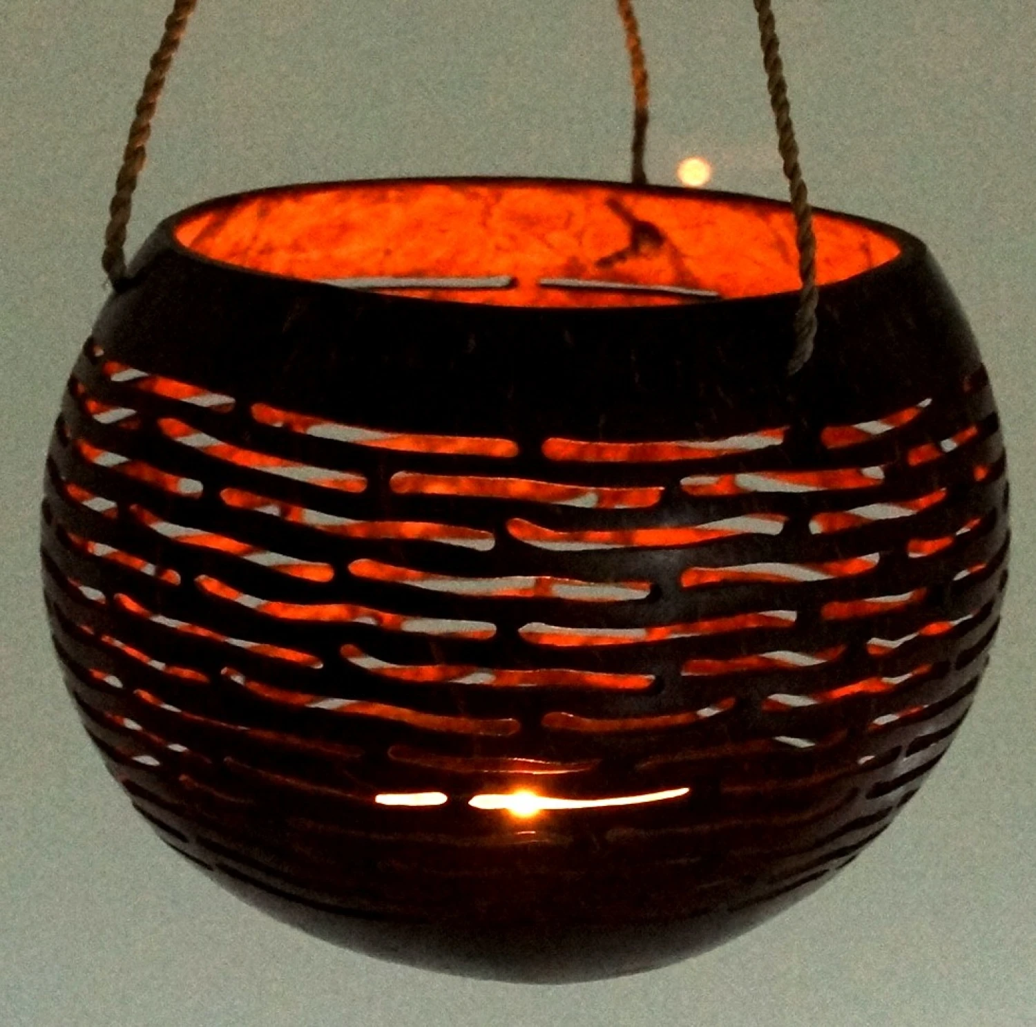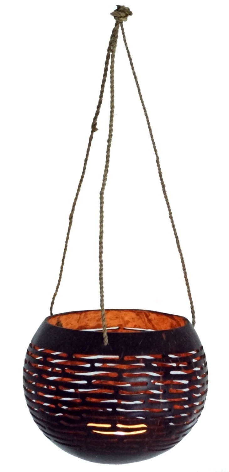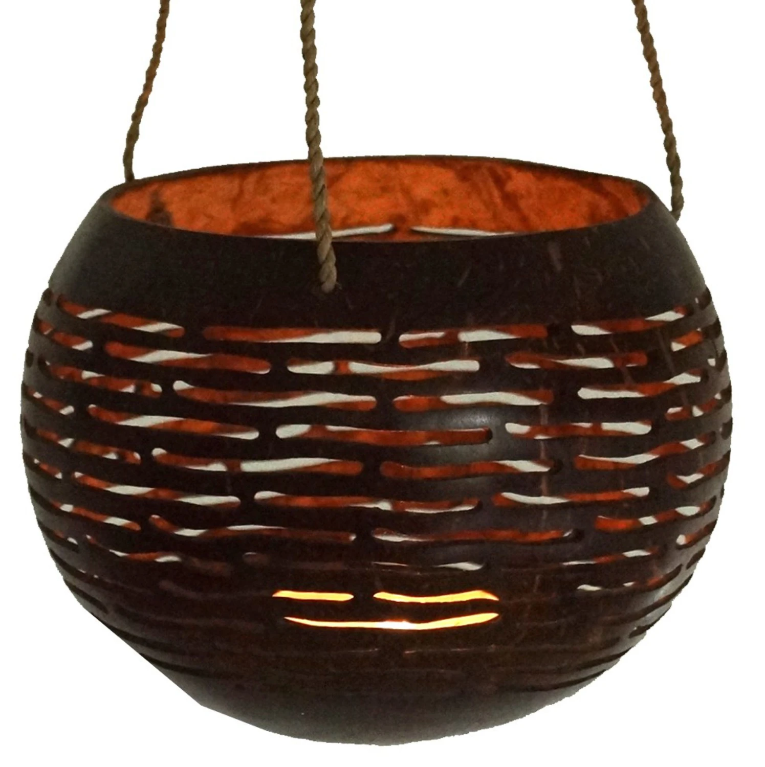 Die Ornamente wurden von Hand in die polierte Nuss geschnitten. Die Kokosnuss hat dabei ihre natürliche Form behalten, daher kann die Größe leicht variieren.