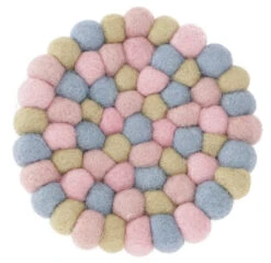 Filzuntersetzer, Untersetzer Aus Filzkugeln, Filzdekoration Rund – Hellgrau – 2 Cm Ø20 Cm