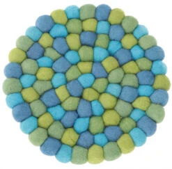 Filzuntersetzer, Untersetzer Aus Filzkugeln, Filzdekoration Rund – Türkis/bunt Ø 10 Cm