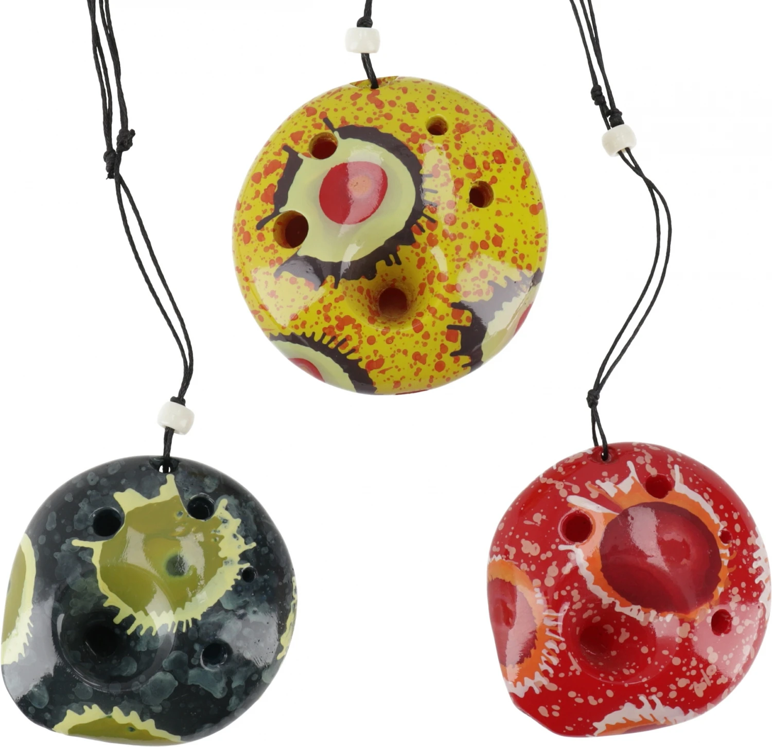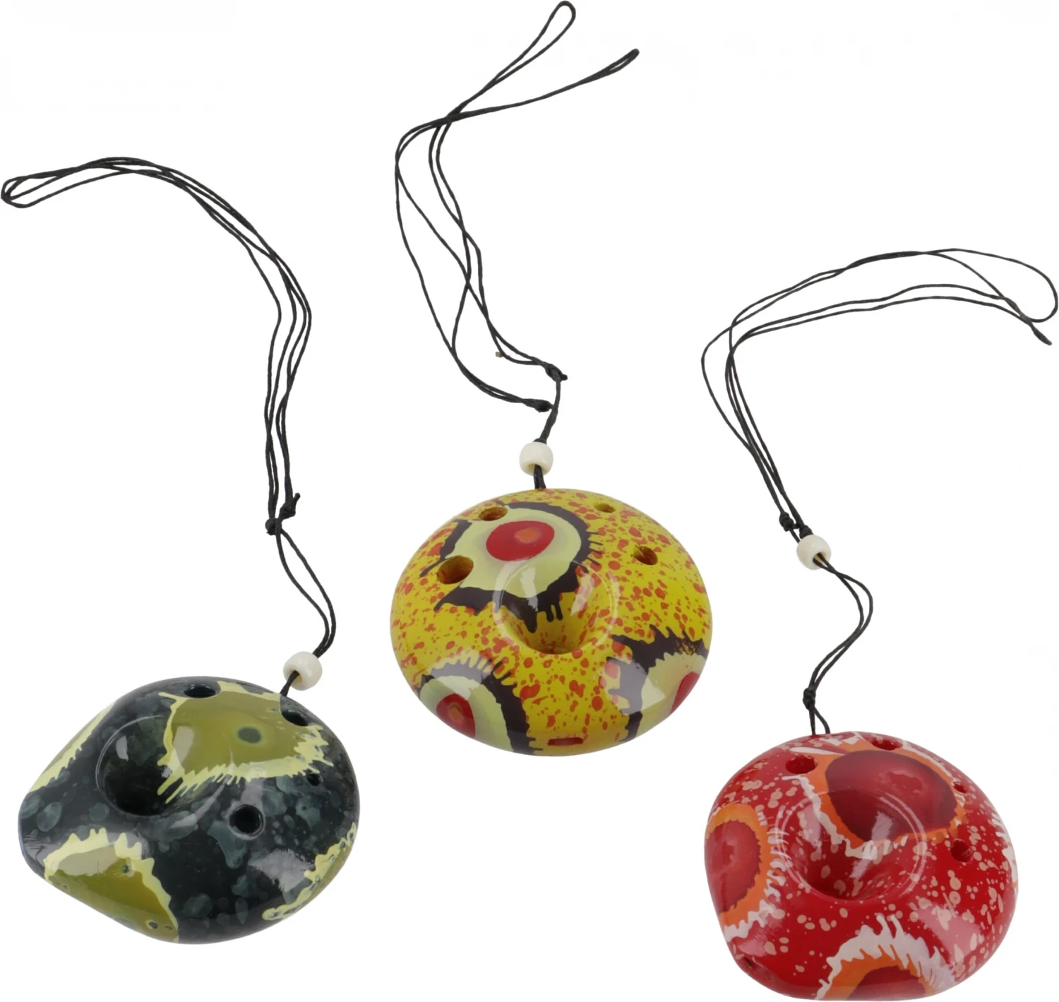 Musikinstrument Aus Ton, Handgearbeitete Flöte – Okarina Mehrfarbig – 3x8x8 Cm Ø8 Cm