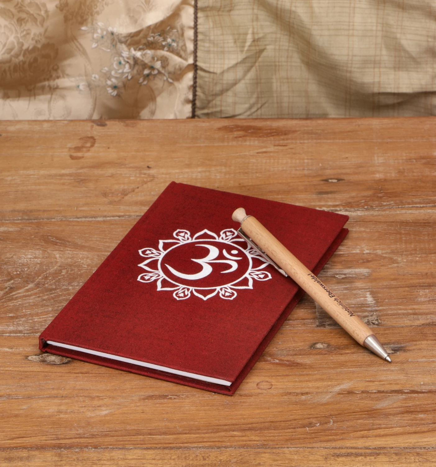 Auf dem Einband die Silbe OM abgebildet. Notiere Erlebnisse und Gedanken jederzeit auch ohne Strom auf die bewährte analoge Art. Perfekt geeignet für unterwegs, auf Wanderungen, Kanutouren etc..