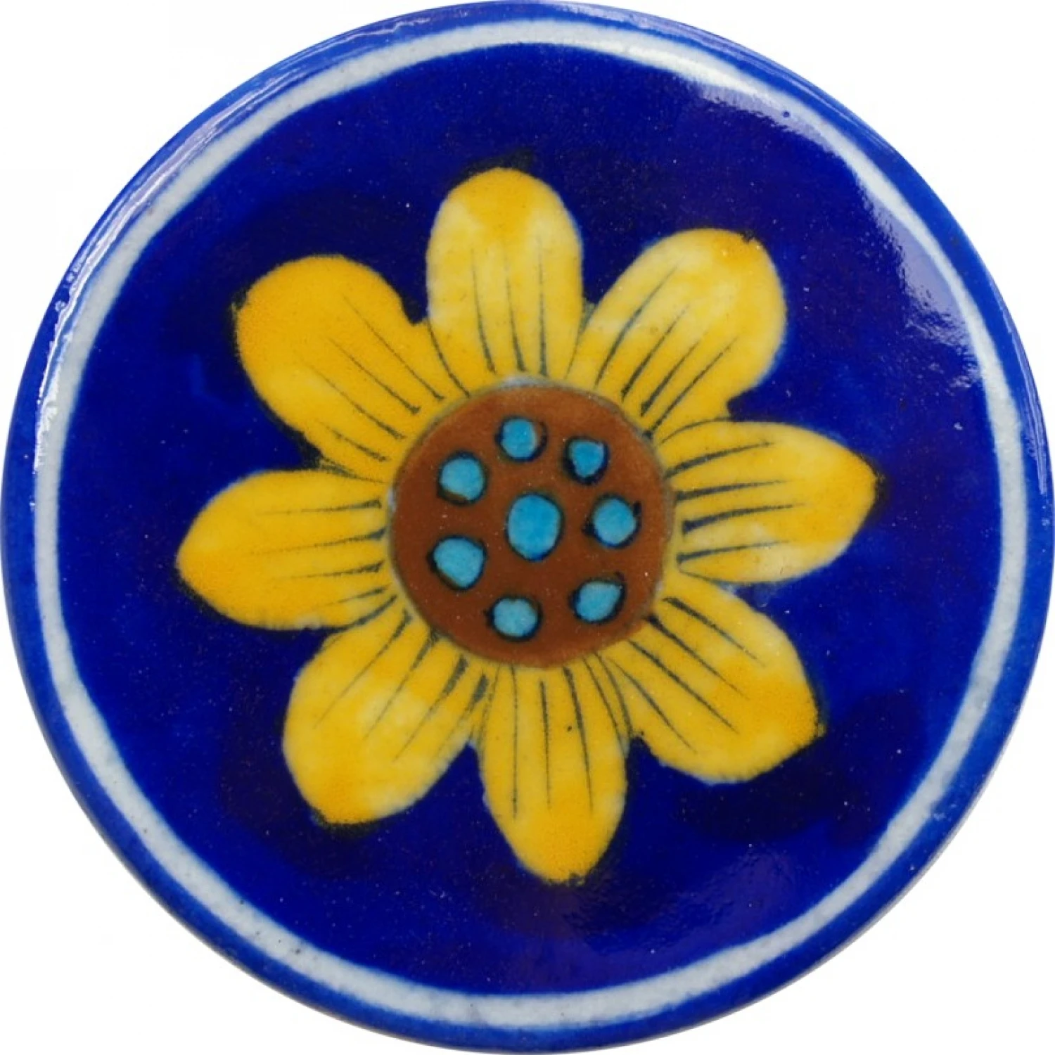 Handbemalter Keramikuntersetzer aus Indien, der auf der Unterseite mit Velours beklebt ist.