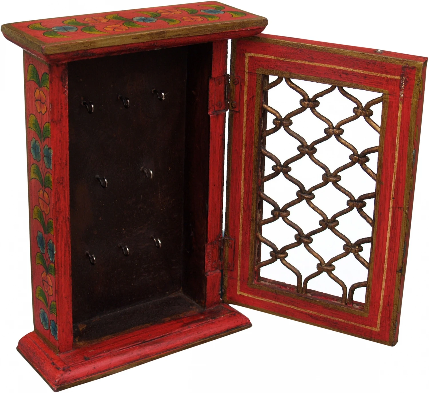 Die bunten, handbemalten Schlüsselkästen aus Indien mit ihren traditionellen Motiven heben sich wohltuend von Schlüsselkästen aus Edelstahl ab. Nebst sauber aufgeräumten Schlüsseln, sind diese handgearbeiteten Stücke außerdem noch ein hübsches Dekoration Accessoire.