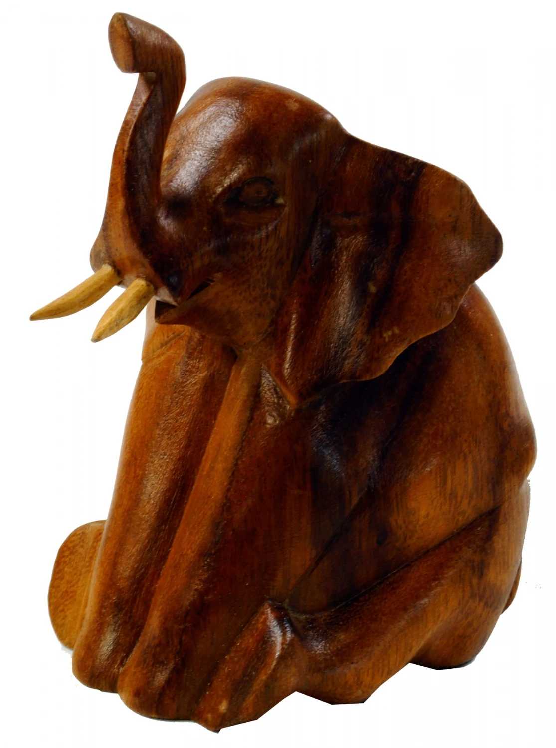 Sitzender Deko Holzelefant – 12x10x7 Cm