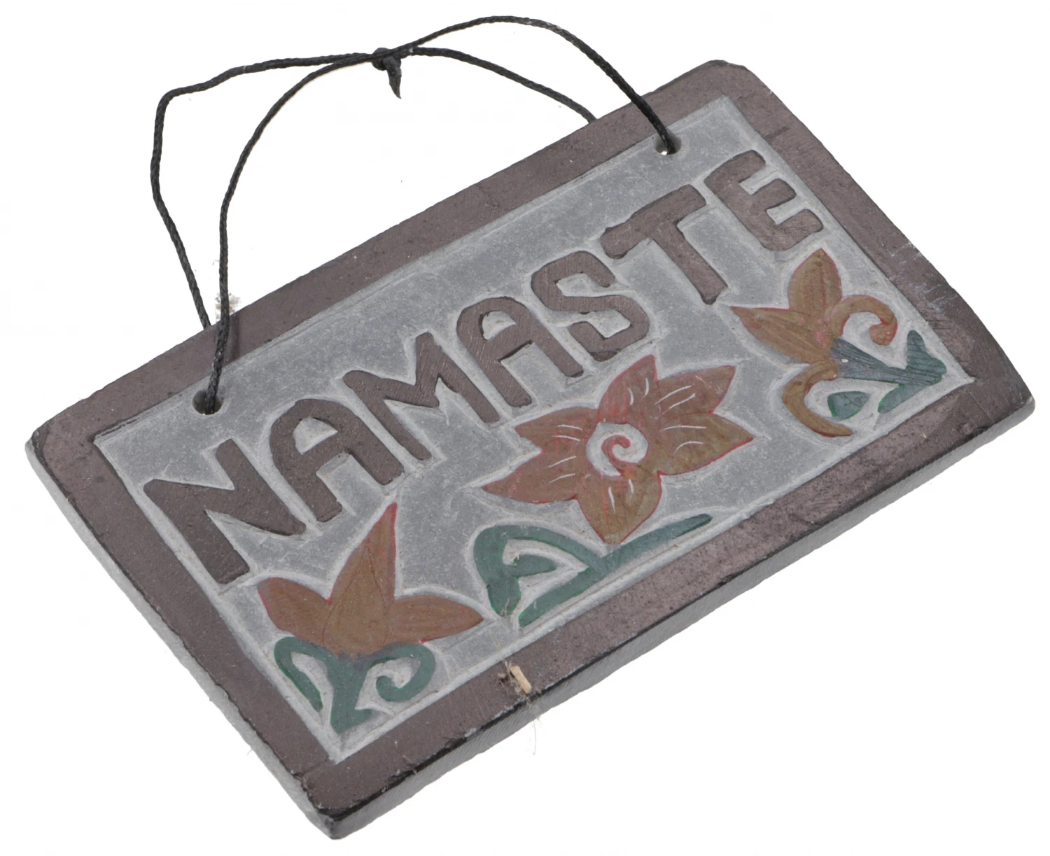 Tibetisches Steinbild, Relieff Aus Schiefer – Namaste 5 – 6x10x0,7 Cm
