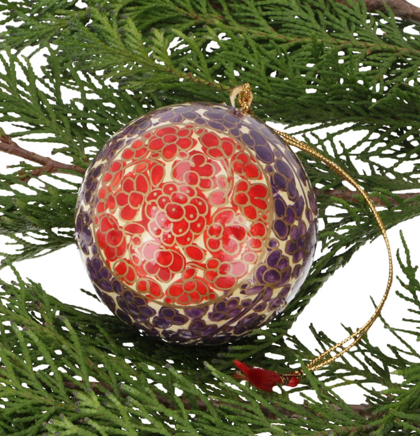 Upcycling Weihnachtskugel Aus Pappmachee, Handbemalter Christbaumschmuck, Kaschmirkugel – Muster 1 – 7x7x7 Cm Ø7 Cm