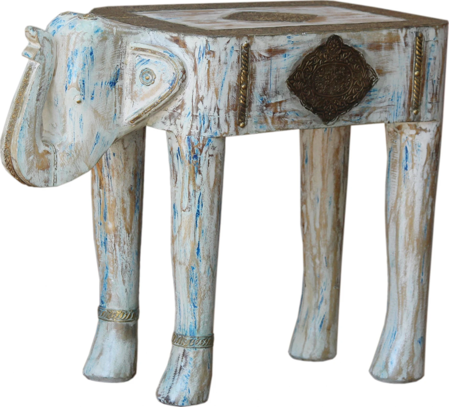Vintage Hocker, Blumenbank In Elefantenform Mit Schublade – Blauweiß – 39x55x22 Cm