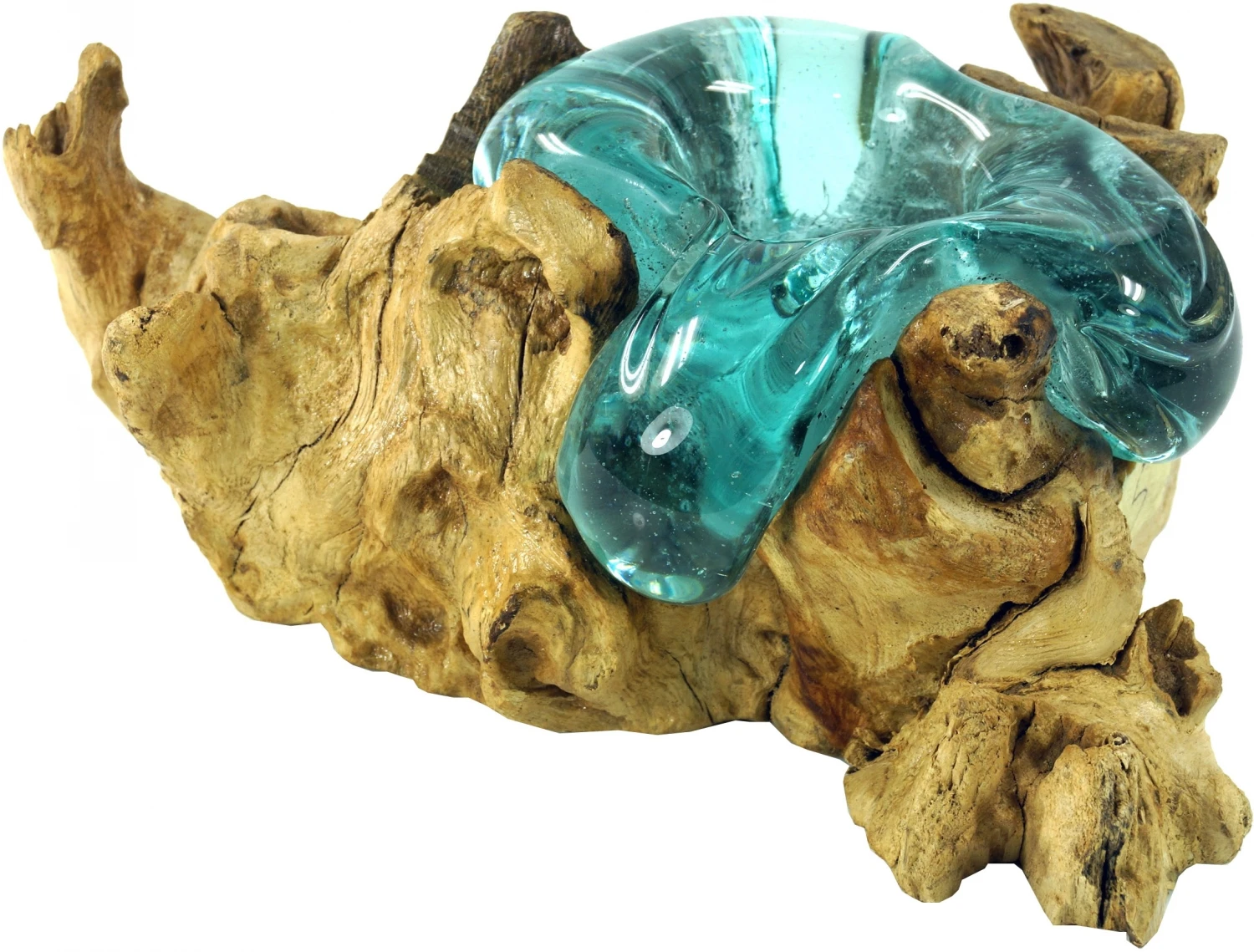 Wurzelholz Mit Teelichthalter Aus Mundgeblasenem Glas – Modell 1 – 13×15 Cm